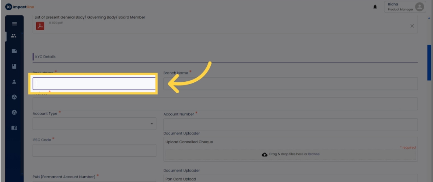 4.Enter KYC Details: Provide the bank details of the organisation and upload a scanned copy of a cancelled cheque.