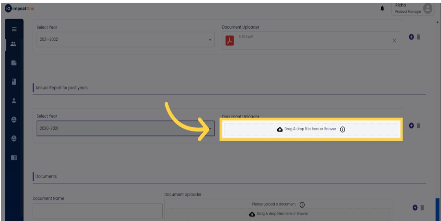 10.Upload Annual Reports: Add the Annual Reports for the past three years in the similar manner.Add the Annual Reports for the past three years. First select the financial year from the drop down, then upload the document. Similarly add for the last three financial years by clicking on the '+' button.