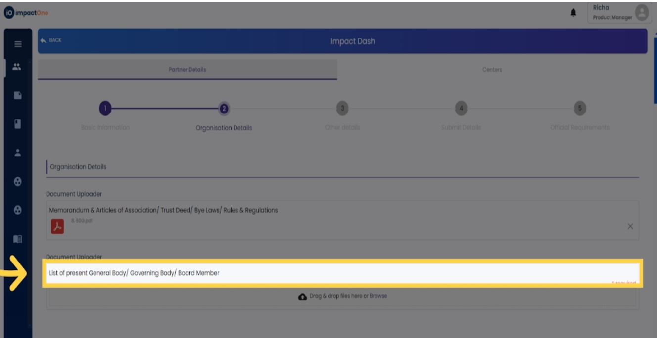 3.Upload List of Board Members: Similarly, upload the document listing the present General Body/ Governing Body/ Board Members.