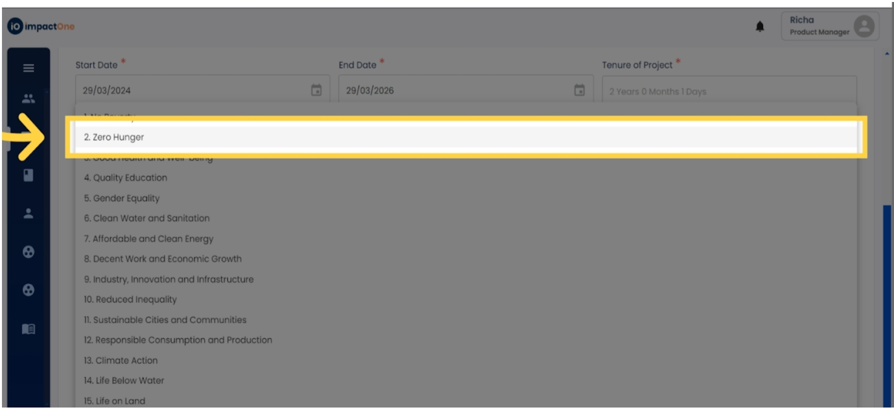 9.SDG Selection: From the dropdown menu, select the Sustainable Development Goal (SDG) associated with your proposal/project.