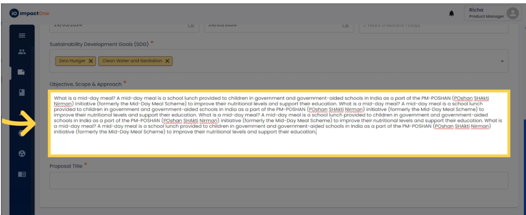 2. Initiating Process: To initiate the process, click on the "Create Proposal" or "Create Project" button located on the right side of the screen.