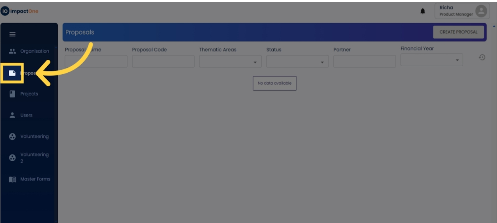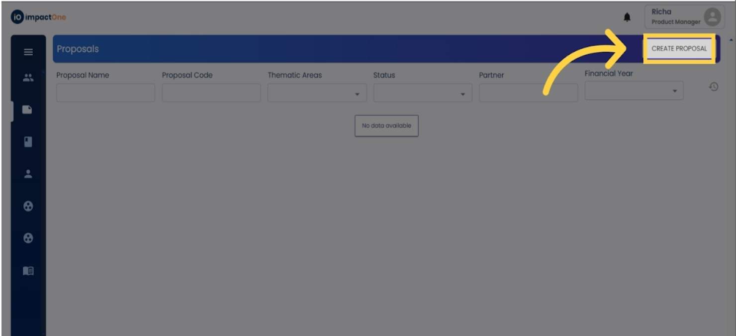 1.Proposal Creation: Navigate to 'Proposals' on the left side of the screen.