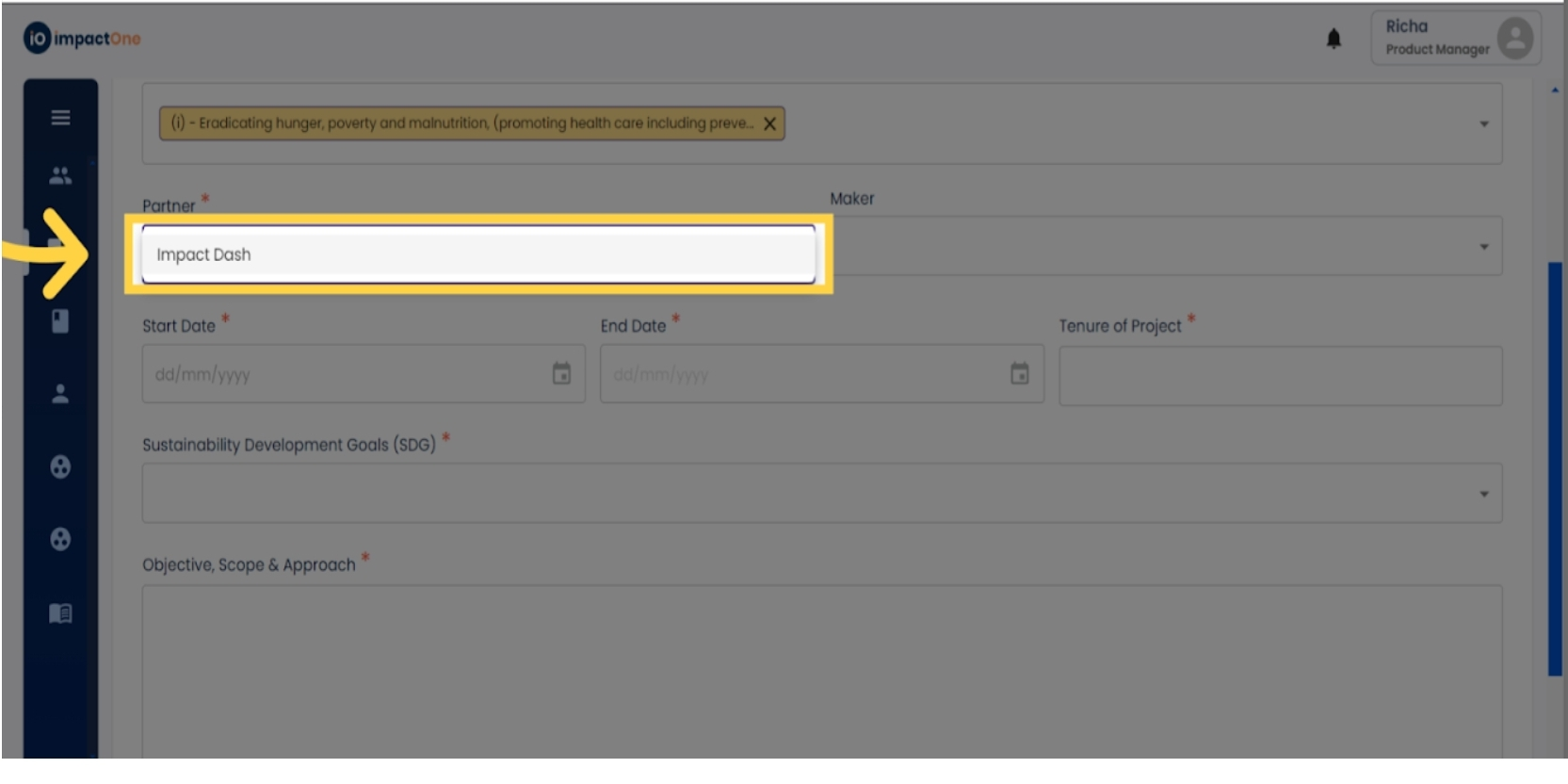 6. Assign partner: Assign a partner name/implementing agency to the proposal/project.