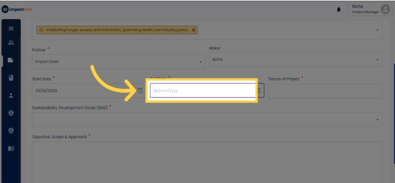 8. Enter Date: Enter the start and end dates for the proposal/project.