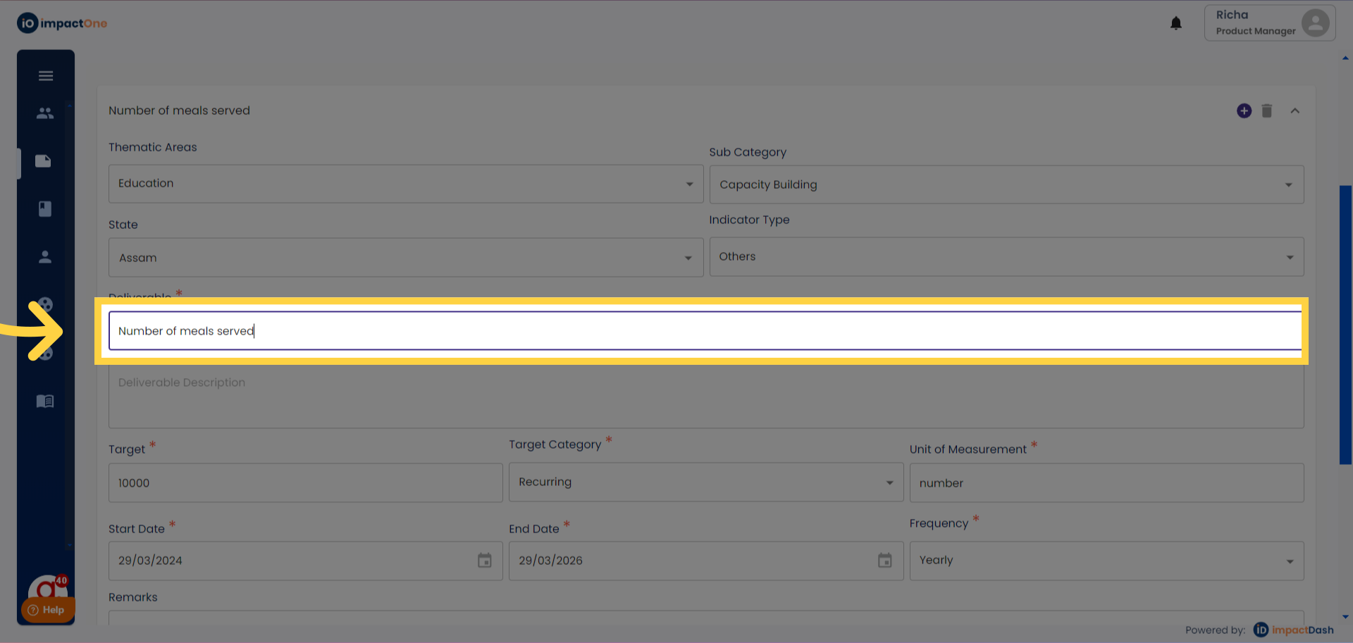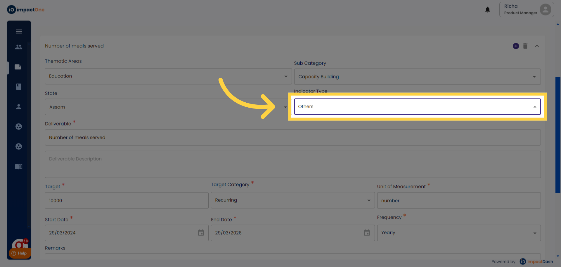 6.Indicator Type: Select indicator type: Output, Activity,Input for your defined deliverable.