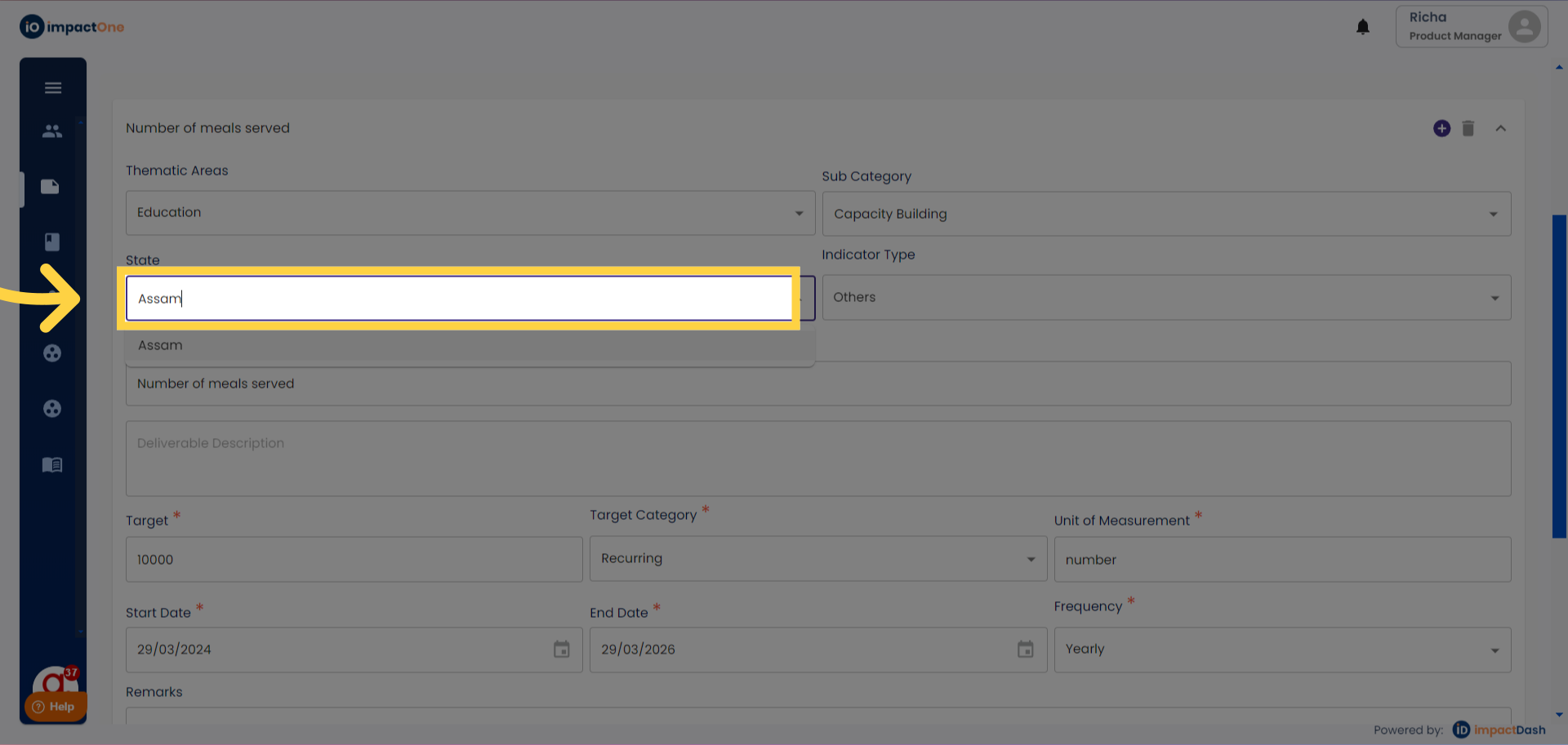 9.Enter Target Category: Enter the target category, from drop down, Cumulative or Recurring.