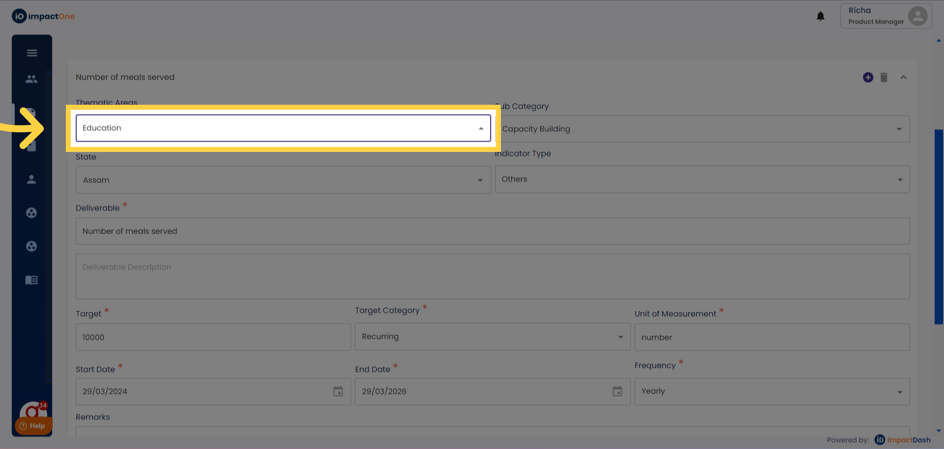 3.Thrust area and Sub category: Select category and sub category from the drop down.