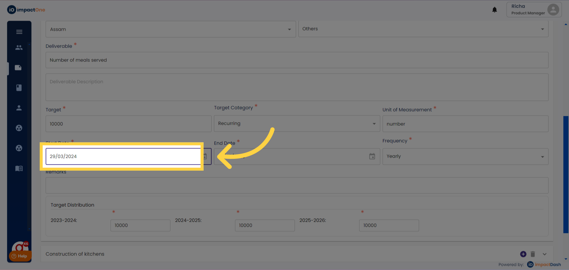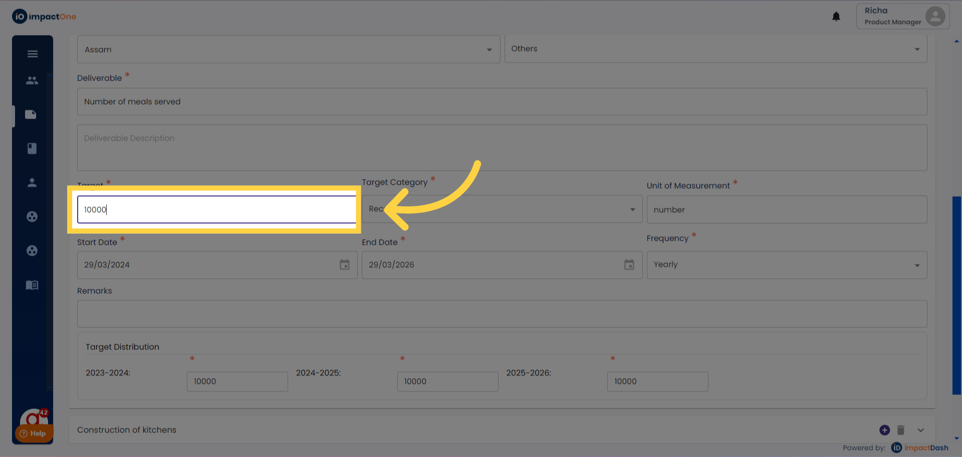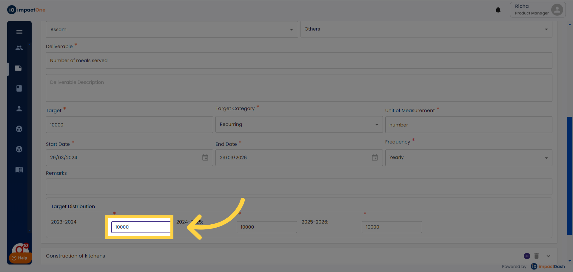 13.Enter target distribution: Distribute the target in the distribution boxes as per your intervention frequency.