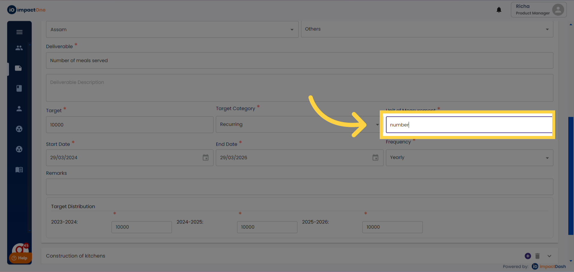 10.Unit of Measurement: Enter the unit of measurement for the target entered.