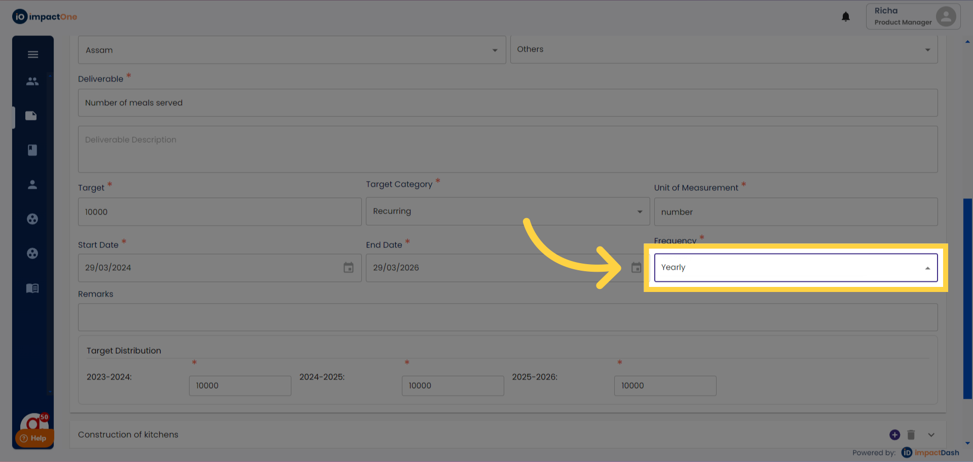 12.Select frequency: Select the frequency of the intervention from the drop down: Monthly, Quarterly, Half yearly, Yearly.