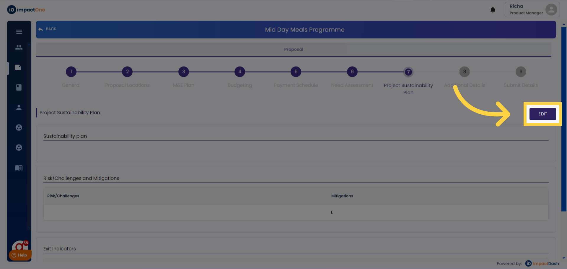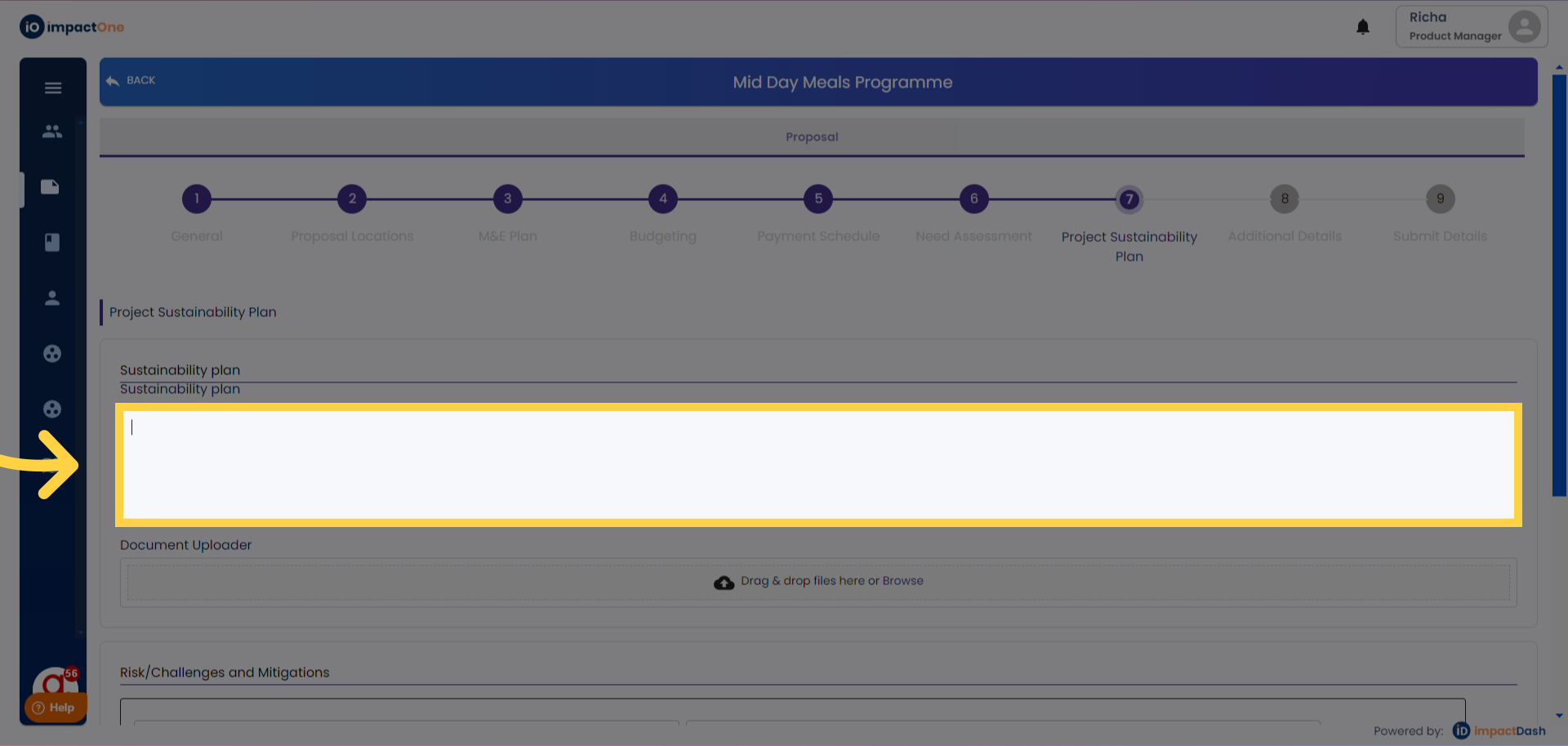 Filling Sustainability Plan:Begin by meticulously filling in the sustainability plan for the project. Provide comprehensive details about the sustainability aspects of the project.