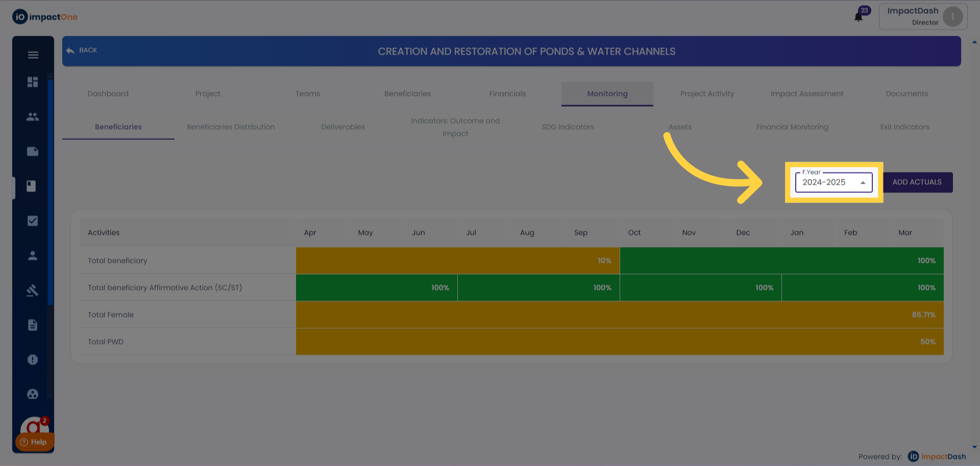 2.Adding Actuals: Click on the "Add Actuals" button on the right side.
