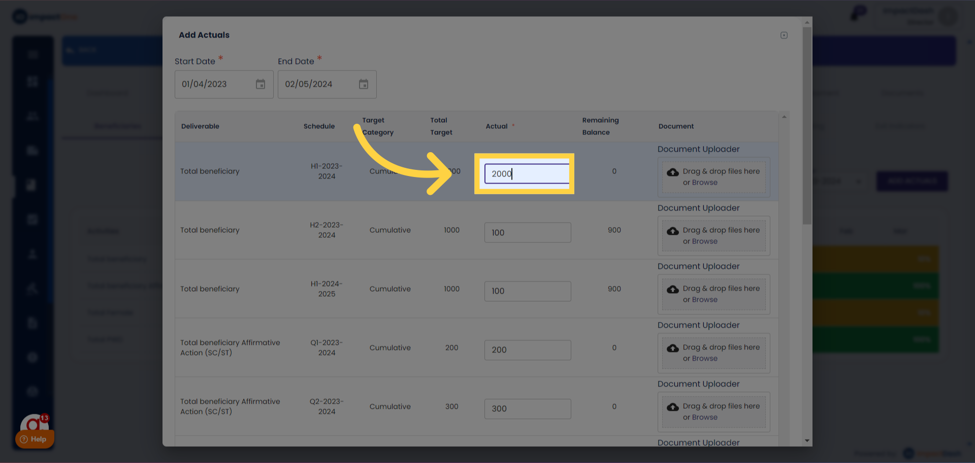 4.Entering Actuals: Add the actuals against the targets.