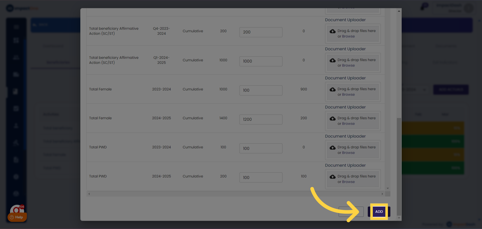 5.Finalizing Entry: Click on the "Add" button below once all actuals are entered.