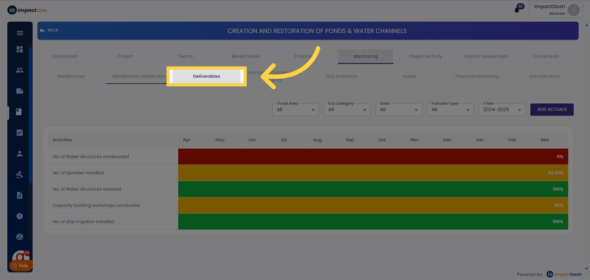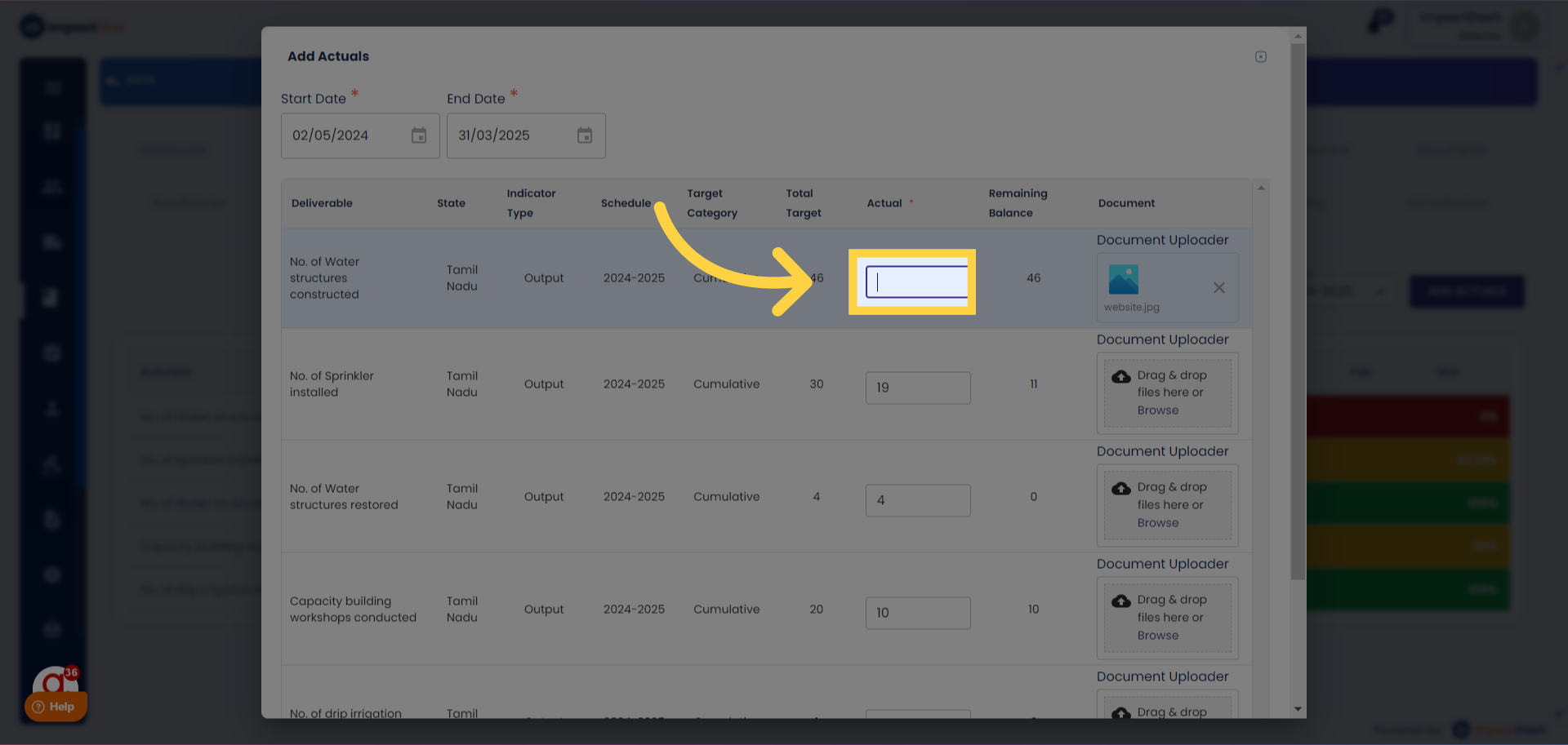 4.Entering Actuals: Add the actuals against the targets.