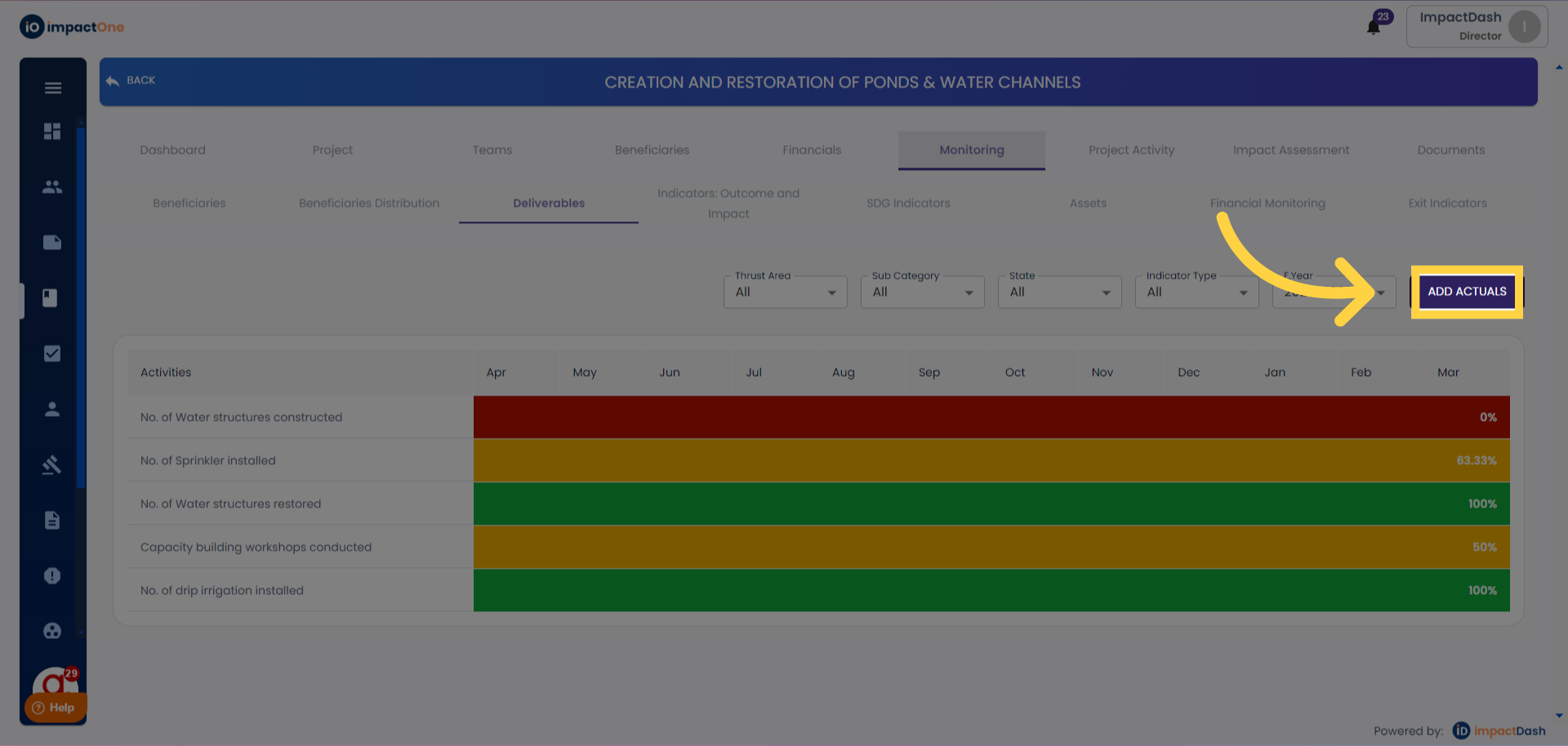 2.Adding Actuals: Begin by selecting the financial year. Click on the "Add Actuals" button on the right side.