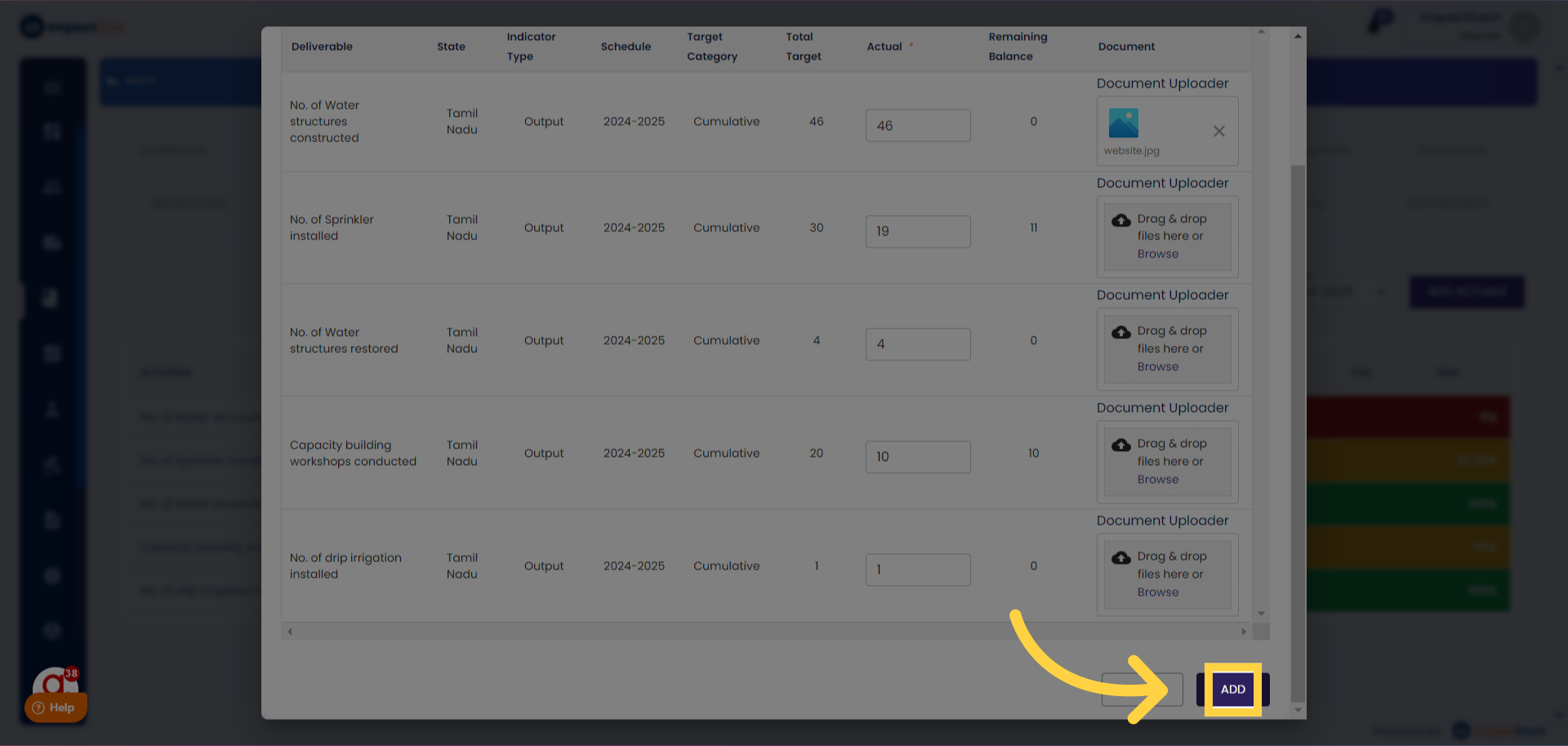 5.Finalizing Entry: Click on the "Add" button below once all actuals are entered.
