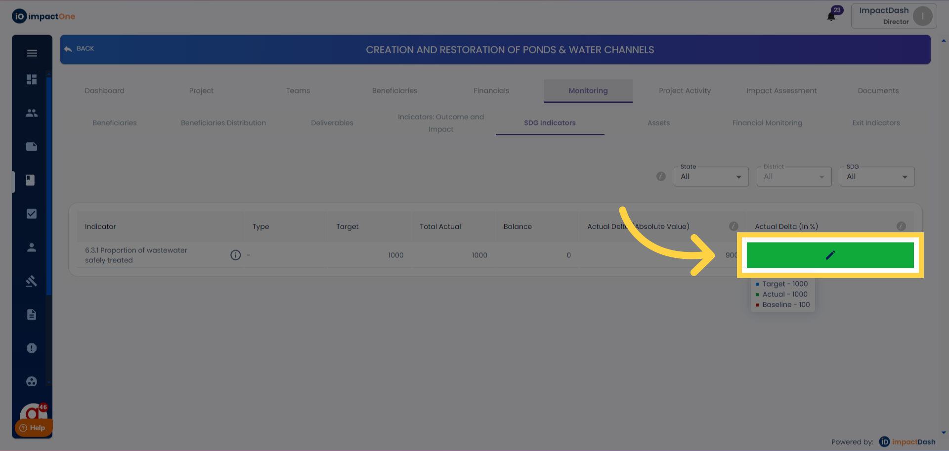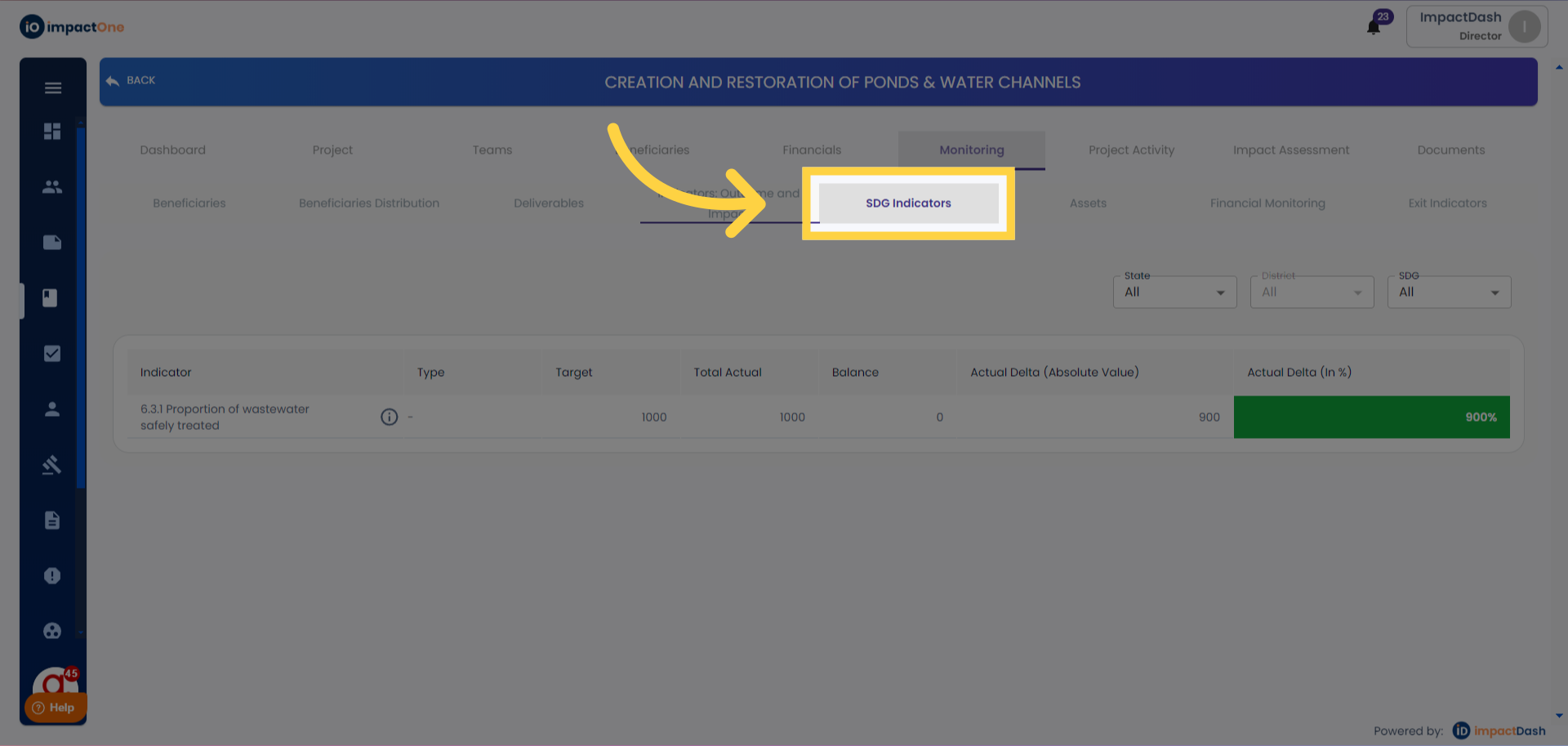 1. SDG Indicator: Navigate to SDG indicator section under monitoring.