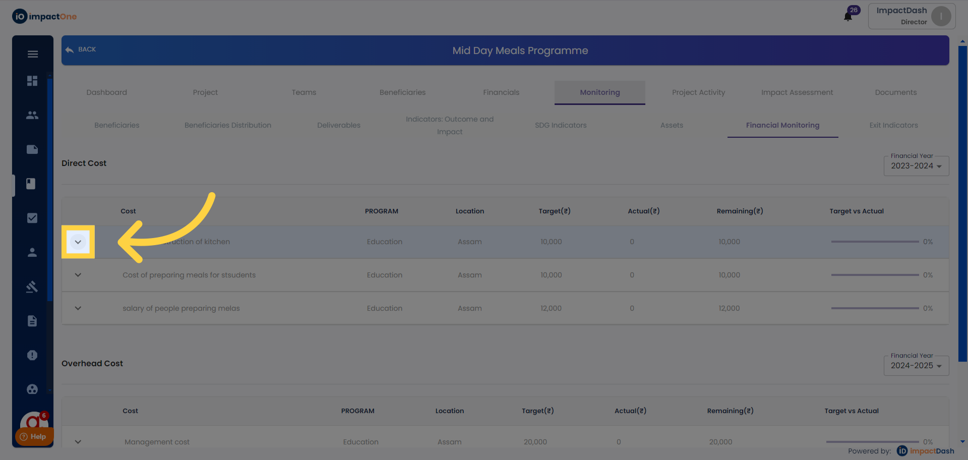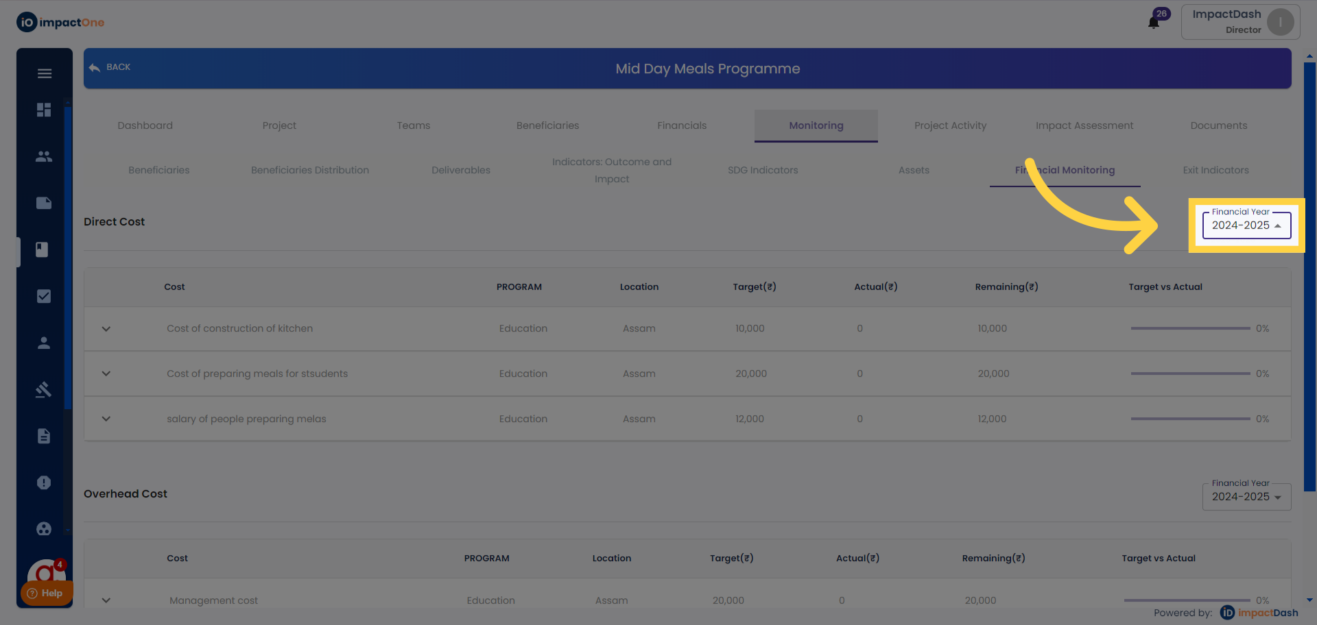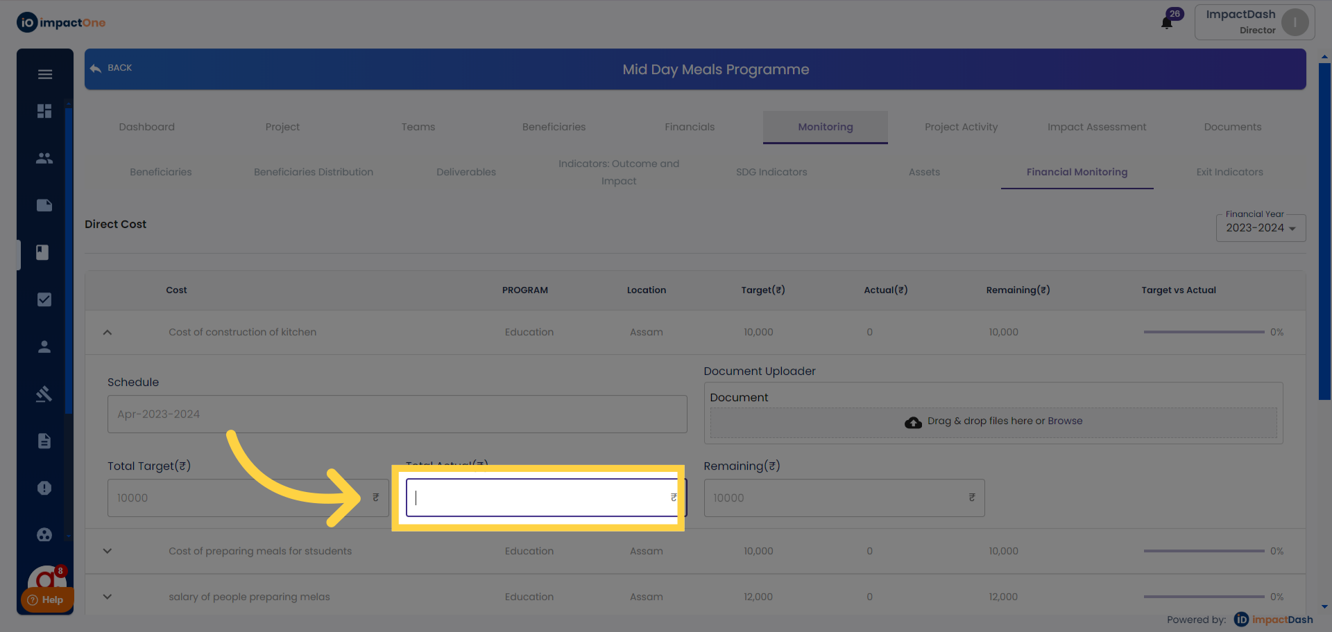4. Entering Actuals: Enter the actual value against the target for the respective line item.