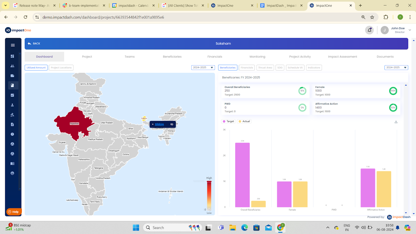 Summary> Map > new tab: Locations> Show the states and districts in which the project is implemented.
