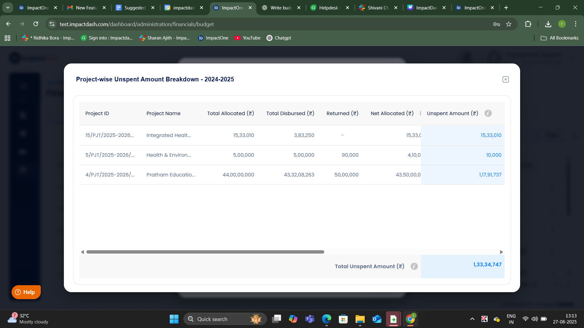 You can review the unspent amount details along with the list of projects from which these amounts are calculated.